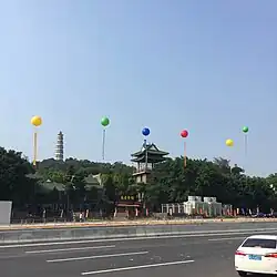 The primary tourist attraction in the Liuhua Park is the Liuhua Pagoda, which was built in the Ming dynasty.[10] In 1938, the first armed resistance to the Japanese occupation of China in Dongguan happened near the Liuhua Pagoda, and a memorial pavilion near the pagoda has been erected to commemorate it.[10]
