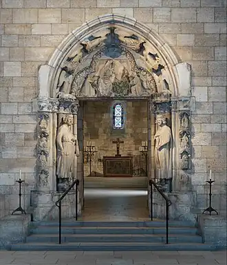 The Doorway from Moutiers-Saint-Jean is a portal dating from c 1250, originally for the monastery of Moutiers-Saint-Jean, near Dijon, Burgundy, France, and installed at The Cloisters, New York City, since 1932.[1] It was designed in the Gothic style and carved from white oolitic limestone. The abbey was founded in the 5th century, and became a major center of influence. The abbey was patronised by a line of kings and nobles over the centuries; at one time it was financed by the dukes of Burgundy.[2]