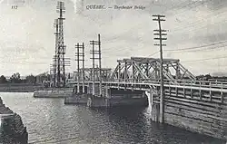 The city began demolition of the bridge in 1913, and completed its replacement with a steel bascule bridge in 1915. This later gave way to the current Dorchester Bridge, a concrete structure, which opened to traffic in 1972. Construction of the Saint-Joseph Street Mall, which cut off access to Charest Boulevard, significantly reduced traffic on the bridge.[5]