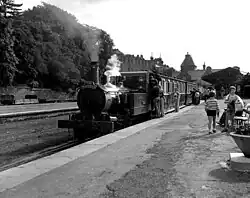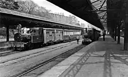 Douglas Railway Station (Manx: Stashoon Raad Yiarn Ghoolish) is the main terminus of the Isle of Man Railway and is located at the landward end of the quay in Douglas, the capital of the Isle of Man. It was once the hub for now closed lines to Peel, Ramsey and Foxdale.