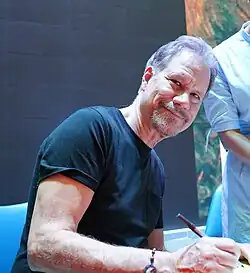Douglas Wood is an American writer of many books for children and adults, with over two and one half million copies in print.[7] Old Turtle and Grandad's Prayers of the Earth are among his best known works. Among Wood's honors and awards are the Christopher Medal, American Booksellers Book of the Year, International Reading Association Book of the Year, and Parent's Choice Award. His book, Miss Little's Gift, was recognized as a Notable Book by the Smithsonian Institution.[8] Much of Douglas Wood's thematic material comes from a lifelong interest in the outdoors, particularly the relationship between the human spirit and the natural world. In 2011 Douglas Wood narrated the symphonic setting of Old Turtle at the Lincoln Center.[9]