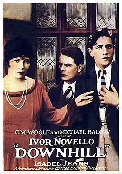 Downhill is a 1927 British silent drama film directed by Alfred Hitchcock, starring Ivor Novello, Robin Irvine and Isabel Jeans, and based on the play Down Hill by Novello and Constance Collier. The film was produced by Gainsborough Pictures at their Islington studios. Downhill was Hitchcock's fourth film as director, but the fifth to be released. Its American alternative title was When Boys Leave Home.[1]