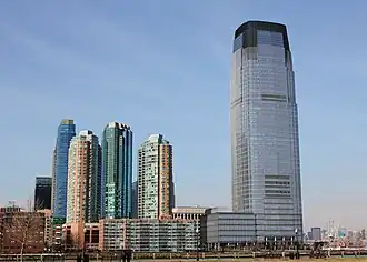Redevelopment of the Jersey City waterfront has made the city one of the largest centers of banking and finance in the United States and has led to the district and city being nicknamed Wall Street West.[1] By the early 2020s, the construction of numerous residential skyscrapers along the waterfront made median rental rates in Jersey City the highest of any city in the United States.[3]