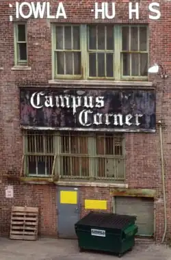 Howland Hughes building rear facade. Unlike the front of the building, the back had not been restored as of 2011.
