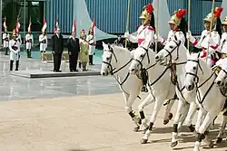 The guard of honour for the President of Brazil includes the 1st Guard Cavalry Regiment of the Brazilian Army, known as the "Dragões da Independência" (Independence Dragoons). The name was given in 1927 and refers to the fact that a detachment of dragoons escorted the Prince Royal of Portugal and Brazil, Pedro of Braganza, at the time when he declared Brazilian independence from the United Kingdom of Portugal, Brazil and the Algarves on 7 September 1822.