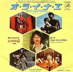 "Dream Away" is a song by the English rock musician George Harrison from his tenth studio album Gone Troppo (1982). The song was featured over the end credits of Harrison's HandMade Films production Time Bandits (1981), which was director Terry Gilliam's first successful film outside of his work with Monty Python.[1] Aside from the film's orchestral score, it was the only song featured in Time Bandits and was written specifically for the film. "Dream Away" was also issued as a single in Japan in February 1983.