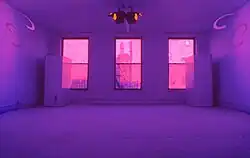 Since 1993, a long-running version of the exhibition located above the couple's 275 Church Street loft has been open to the public for lounging, immersive listening, and meditation.[4] This version has recently employed a new configuration and musical piece featuring Young and Zazeela's associate Jung Hee Choi,[8] titled Ahata Anahata, Manifest Unmanifest X and featuring alternate visuals.[9] In 2015, a unique version of Dream House was established by the Dia Foundation at West 22nd Street in New York.[2] Current iterations of Dream House are currently run by Young and Zazeela's MELA (Music Eternal Light Art) Foundation.[4]