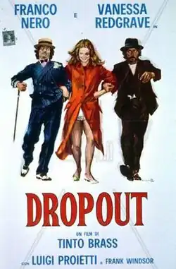 Dropout is a 1970 Italian romantic drama directed by Tinto Brass. It stars real-life couple, Franco Nero and Vanessa Redgrave. They also worked with Brass a year later on the drama La vacanza. Dropout was released in France on December 18, 1970, followed by a theatrical release in Italy on February 22, 1971.