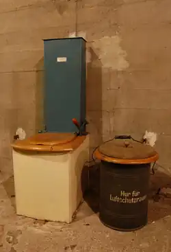 Example of a historical dry toilet with peat dispenser which was used in bunkers during World War II in Berlin (Metroclo by Gefinal)