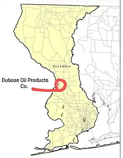 The Dubose Oil Products Company was located near Highway C97 in the Cantonment, Florida area.[1]