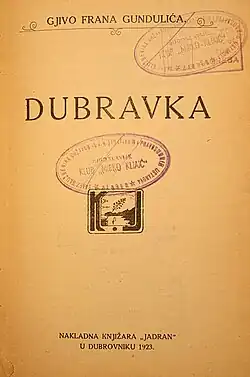 - ^ Hrvatsko narodno kazalište u Zagrebu Archived 2014-10-08 at the Wayback Machine, Dramske predstave: Ivan Gundulić, Dubravka, 2014.