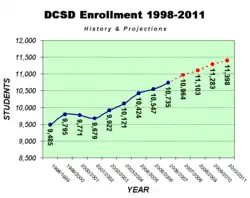 In the 2023–2024 school year, 10,535 are enrolled in DCSD. Of those, 27.4% are economically challenged according to U.S. News & World Report.[8]