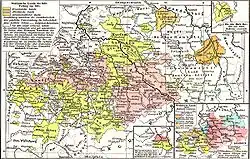 In 1309 Henry III of Głogów was followed by his eldest son Henry IV the Faithful, who in 1321 divided the duchy again between him and his younger brothers. He ceded Głogów to Przemko II and retired to Żagań, which again became the capital of a duchy in its own right. From 1322 to c. 1324–1325, Henry IV additionally controlled the eastern part of Lubusz Land with the towns of Torzym and Sulęcin, and the Międzyrzecz castellany in north-western Greater Poland.[2] In 1329 all sons of Henry III of Głogów became vassals of King John of Bohemia - with the exception of Przemko II who died suddenly two years later. In 1353, the towns of Nowe Miasteczko and Polkowice passed to the Duchy of Żagań from the Duchy of Ścinawa.[3] When in 1393 Henry VI the Elder, grandson of Henry IV died without issue, the estates were again re-unified with Głogów until in 1412 Jan I, the eldest son of Duke Henry VIII the Sparrow became the sole ruler of the Żagań duchy. After a fierce battle for the inheritance, in 1472 his son Jan II the Mad finally sold it to the Saxon duke Albert III the Bold with the consent of the Bohemian king Matthias Corvinus, thus ending the centuries-long Piast rule.