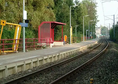 Dudelange-Centre railway station (Luxembourgish: Gare Diddeleng-Zenter, French: Gare de Dudelange-Centre, German: Bahnhof Düdelingen-Zentrum) is a railway station serving central Dudelange, in southern Luxembourg. It is operated by Chemins de Fer Luxembourgeois, the state-owned railway company.