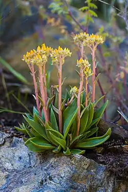 - ^ Yost, J. M.; Bontrager, M.; McCabe, S. W.; Burton, D.; Simpson, M. G.; Kay, K. M.; Ritter, M. (2013). "Phylogenetic relationships and evolution in Dudleya (Crassulaceae)" (PDF). Systematic Botany. 38 (4): 1096–1104. doi:10.1600/036364413X674760. S2CID 15715233.