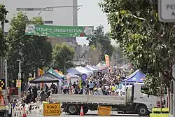 Open-air concerts, holiday events, and family-friendly activities are often held in Coachmans park, around the middle of Queen Street.[53] During the annual Spring Festival, Queen Street itself is cordoned off from traffic to allow pedestrians to freely roam the setups along the street, where a parade also takes place that includes a convoy of vintage automobiles, walking groups of local organisations, and marching bands.[54]