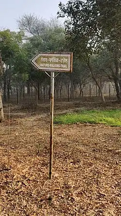 Signboard directing towards the walking Trail in Bir Dyalpura