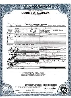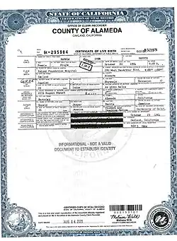 1. ^ a b Debolt, David (August 18, 2020). "Here's Kamala Harris' birth certificate. Scholars say there's no VP eligibility debate". The Mercury News. San Jose, California. Archived from the original on February 17, 2021. Retrieved November 27, 2021.