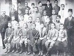 Meanwhile, Bourguiba settled in the bourgeois neighborhood of Tourbet el Bey, in the medina of Tunis, where his brother M'hamed rented a housing on Korchani Street. Interpreter at the State section, he was often off to work or studying in the Khaldounia, aiming to prepare the first half of the French baccalaureate. This left Habib with Dhaouia, M'hamed's servant who made Habib her domestic ; She made him do household chores or buy groceries and took him with her whenever she went visiting families in order to select a suitable wife for M'hamed. At the start of the 1907 school year, his brother enrolled him in the Sadiki elementary school. The superintendent described him as turbulent but studious. The young Habib had to perfect Quran learnings, that being the main lessons taught. That made him spend weekends studying and learning Quran with his brother Mahmoud, shouting and screaming being Mahmoud's teaching method.[9] "To go to school", he recalled, "I had to go by foot. Leaving the house where I lived and which belonged to the grandfather of Tahar Lakhdar, I crossed the souks and climbed the hill of Sidi Ben Arous. I was poorly dressed. My shoes had holes which filled with water. By pride, I refused to ask my older brother to buy me a new pair. That was my life throughout my primary education".[7] The Husainid family members being the only ones allowed to take lunch inside the school, Bourguiba had to go home and eat Dhaouia's ratatouilles that did not put an end to his hunger. It was only during the 1911 epidemic of Cholera which killed M'hamed's wife, that he was able to eat his fill, thanks to the Couscous destined for guests, narrowly avoiding starvation.[13][9]