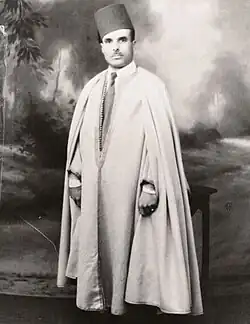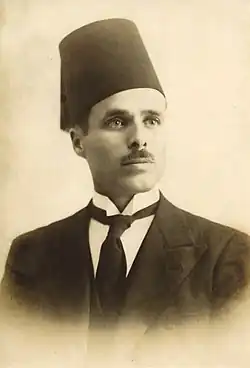 To heal and get better, Bourguiba's family sent young Habib to his brother Mohamed in Kef and therefore, enjoy natural landscapes and good mountain air. His brother, a 39 years old medic at the local hospital, was very appreciated by the inhabitants of the city. From January 1920, he welcomed his brother warmly for twenty one months. This long two years journey was a turning point in his life. Indeed, far away from the horrible school conditions and the abuse of both Dahouia and his sister-in-law, the skinny pale teenager could finally evolve into a confident man. His brother Mohamed played a major part in this change of personality, being open-minded, modernist and advocating for secularism. Mohamed lived with an Italian nurse who was not that snub bourgeoisie. On the contrary, she warmly welcomed him and had a great part in his metamorphosis, filling the emotional void of the young boy.[15] Likewise, Mohamed was a great lover of theater and former director of the drama troupe Ech-Chahama, who had stopped its activities because of the war. Between 1909 and 1913, it performed famous plays such as Hamlet, Mejnoun Leila...[8] Since it reprised its activities, Bourguiba rehearsed with his brother and participated in plays that gave him insurance. Unfortunately, the rehearsed play was prohibited by authorities because it recalled the situation of Netherlands people under Spanish colonization. However, Bourguiba enjoyed his brother's sympathy toward the Kef inhabitants: He learned to play cards, discussed military strategy, got interested in Mustafa Kemal Atatürk then visited his other brother Ahmed in Thala with whom he learned horseriding.[20]