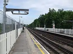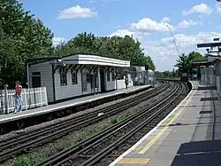 Since the CLR was exclusively a passenger service, two extra dedicated tracks for the GWR's freight trains were opened in 1938, but were closed in 1964.[13] The trackbed of these rails is now overgrown with vegetation, visible immediately to the north of the station.