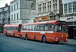 East Kent was taken over by the National Bus Company on 1 January 1969, during this time the company's first rear engined double deckers arrived. These were Daimler Fleetlines with Park Royal bodywork for Thanet garage. These were also the company's first OMO (one man operated) double deckers. Later on some AEC Regents were also converted to OMO to reduce the cost of having 2 crew on each bus but these tended to be used only at peak hours. In 1971 the last buses were delivered in the traditional maroon and cream livery, these were AEC Swifts with Alexander bodywork. Leyland Nationals started to enter the fleet in the 1970s bringing with them the National Bus Company standard livery of Poppy Red and white. In the mid-1970s the Bristol VRT entered the fleet, the first batch having 14'6" ECW bodywork. Later batches had rare Willowbrook bodies before the final batch reverted to the standard 13'8" ECW body, by that time the NBC's standard vehicle. These cleared the last of the AEC Regents from normal passenger service in the early 1980s although some had a swan song on the park and ride for the Open Golf and Sandwich, whilst others were used on contracts and for driver training.