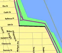 The district includes seven luxury high rise apartment buildings and the Drake Hotel[3] and includes two buildings (the Drake, which is at 140 E. Walton Pl., and 999 N. Lake Shore Dr.) that do not have East Lake Shore Drive addresses.[3]