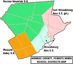 ![]() Map of school districts in Monroe County, Pennsylvania, including East Stroudsburg Area School District | |