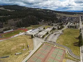 East Valley High School (also known as EVHS) is a large public high school located in Spokane Valley, Washington at the corner of Sullivan and Wellesley. East Valley provides educational opportunities to nearly 1,000 students in grades 9–12. Located on a scenic 40-acre (160,000 m2) site, the high school campus includes athletic fields, two gyms, twelve tennis courts, a track, and a fitness center.[2]