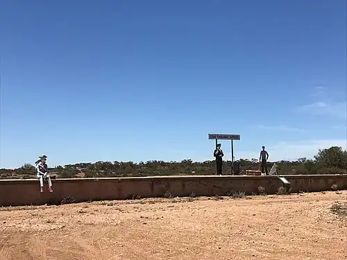 Eba railway station opened on 23 September 1878 when the line from Kapunda was extended to the shipping port at Morgan. A railway siding was also provided. It was named after the friend of Richard MacDonnell, who was the governor of South Australia at that time.[1] Passenger services ended in December 1968 with the traffic on the line dwindling. The railway line finally closed in November 1969 with the line being dismantled. The platform was kept and turned into a highway stop.[2]