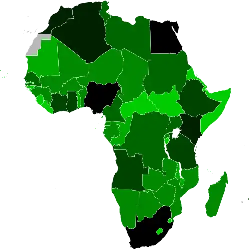 In March 2013, Africa was identified as the world's poorest inhabited continent; however, the World Bank expects that most African countries will reach "middle income" status (defined as at least US$1,025 per person a year) by 2025 if current growth rates continue.[16] There are a number of reasons for Africa's poor economy: historically, even though Africa had a number of empires trading with many parts of the world, many people lived in rural societies; in addition, European colonization and the later Cold War created political, economic and social instability.[17]