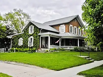 The Edmund and Mary Ann Walworth Booth House is a historic building located in Anamosa, Iowa, United States. Raised in Longmeadow, Massachusetts, Edmund Booth contracted meningitis at age four and lost part of his hearing. By the time he was eight he was totally deaf. His wife Mary Ann was born in Connecticut and she was also four when she contracted meningitis, but lost all of her hearing at that time. Booth became an early educator for the deaf, and his wife was one of his pupils. They both relocated separately to Iowa in 1839, and married the following year. After spending five years in the California gold fields while his family remained in Iowa, Booth returned to Iowa and resumed farming. He was instrumental in establishing the Iowa School for the Deaf in 1855, and the Iowa Association of the Deaf in 1881.[2] He became the association's president in 1884. Booth had a thirty-year career as the publisher and editor of the Anamosa Eureka. The Booth's had this brick Italianate house built in 1870. They lived here until Mary Ann died in 1898 and Edmund in 1905. It was listed on the National Register of Historic Places in 2001.[1]