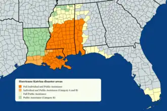 - ^ "Mississippi; Emergency and Related Determinations". Federal Emergency Management Agency. September 27, 2005. Retrieved October 27, 2024.