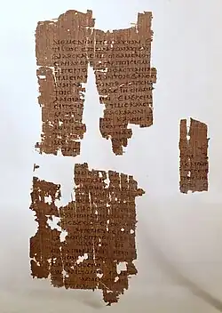 Three fragments of the manuscript form part of the Egerton Collection in the British Library. A fourth fragment of the same manuscript was identified in the papyrus collection of the University of Cologne, and published in 1987.[2][3][4]