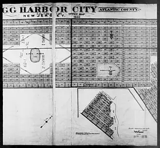 Egg Harbor City was officially incorporated as a city by an Act of the New Jersey Legislature on June 14, 1858, from portions of Galloway Township and Mullica Township. The city was reincorporated on February 13, 1868.[30] The city's growth was slowed due to an economic crisis in 1857, and then further during the Civil War. Though the city did not grow to the size as originally proposed, it grew in population steadily in the 1870s, and remained a virtual island of German language and culture in South Jersey for more than 50 years.[31]