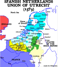 The period between the Pacification of Ghent (8 November 1576), and the Unions of Arras (6 January 1579) and Utrecht (23 January 1579) constituted a crucial phase of the Eighty Years' War (c. 1568–1648) between the Spanish Empire and the rebelling United Provinces, which would become the independent Dutch Republic. Sometimes known as the "general revolt", the period marked the only time of the war where the States–General of all Seventeen Provinces of the Habsburg Netherlands, except Luxemburg, were in joint active political and military rebellion against the Spanish Imperial government through the Pacification of Ghent.[1] The Pacification formulated several agreements amongst the rebellious provinces themselves, and laid down their demands – including the immediate withdrawal of foreign (mostly Spanish, Italian and German) troops from the Netherlands, restitution of old rights and privileges, and self-rule – to king Philip II of Spain.[1]