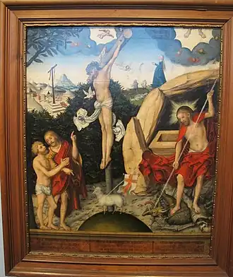 In 1720, Gottfried Heinrich Stölzel composed a meditation of the stations of the Cross as a Passion oratorio which he titled Die leidende und am Creutz sterbende Liebe Jesu (The love of Jesus which suffered and died on the Cross), which is also known by its incipit, Ein Lämmlein geht und trägt die Schuld.[14][15][16][17][18][19] Composed for Gotha, this oratorio knew many repeat performances, some of these in slightly modified versions: the oratorio was for instance performed in Leipzig in 1734, entitled Der Gläubigen Seele Geistliche Betrachtungen Ihres leidenden Jesu, directed by J. S. Bach, and, in 1736, in Rudolstadt and in Nürnberg.[18][19]