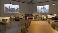 Amir's video and performance-based work present staged interventions and situations that cross fiction with reality.[11] Amir has appeared in some of her own works, and also makes use of actors and willing audience as participants in structured interactions in controlled environments, to illustrate and challenge societal norms.[12] Her earlier works are about issues of gender and social identity, and relate to her experience as a gay artist living and working in Israeli society.[13] Some of her works focus on the effects on individual people of power relationships structured by societal norms.[14][15]