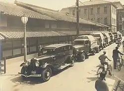 The company was founded in the year 1615[4] and is known as the oldest cotton cloth dealer of Japan.[1] Before the Bakumatsu, the store of the business was lost in fires twice and was reconstructed in the early Meiji Period. However, during WWII the building was demolished as part of the firewall construction plans of the time.[2]
