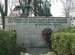 A war memorial near Dachauer Straße commemorates the Bavarian railway troops of World War I. The original one was erected by Karl Badberger in 1922, but was destroyed in 1945 during World War II. It was rebuilt in 1965.