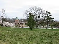 Eisenhower Park, formerly known as Salisbury Park, is a public park in East Meadow, New York bordered by Hempstead Turnpike on the south and Old Country Road on the north. At 930 acres (3.8 km2), it is larger than Central Park (in Manhattan, New York City), with much of the area devoted to three 18-hole golf courses, including the Red Course, host to the annual Commerce Bank Championship (Champions Tour). The park is home to the September 11th Memorial for residents of Nassau County.