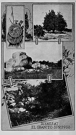 During the Spanish–Mexican area of California history, a settler used the spring water for curing olives.[1] The spring was first commercialized around 1876.[2] In the early 20th century El Granito water was bottled and marketed to the public.[3]