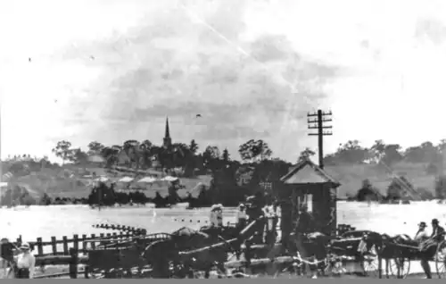 ![]() Elderslie station in the foreground, surrounded by floodwaters in the early 1900s | |||||||||||