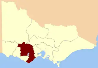 The district's area was defined as consisting of the four central western Victorian counties of Ripon, Hampden, Grenville and Polwarth.[1][2]