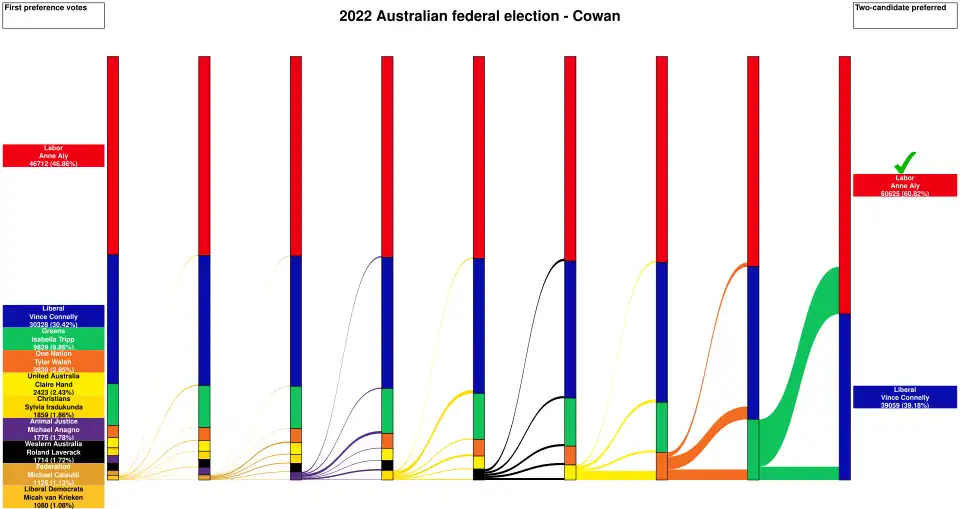 - ^ Cowan, WA, 2022 Tally Room, Australian Electoral Commission.