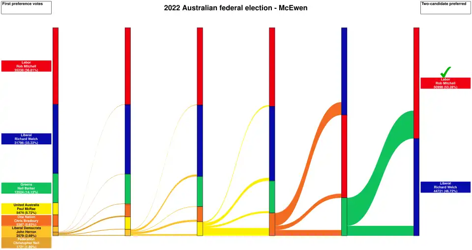 - ^ McEwen, VIC, 2022 Tally Room, Australian Electoral Commission.