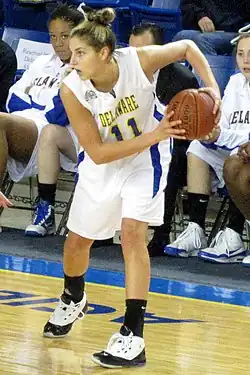 Delle Donne playing for the Delaware Fightin' Blue Hens in 2010