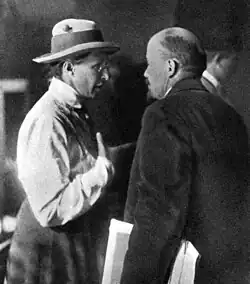 When the RSDLP split into Bolshevik and Menshevik factions in 1903, Stasova cast her lot with Lenin and the Bolsheviks as a professional revolutionary. Over the next two years Stasova adopted the pseudonyms "Absolute" and "Thick".[6] Other pseudonyms which Stasova used during the underground period included "Delta", "Heron", "Knol", and "Varvara Ivanovna".[7] She served as the conduit for Lenin's newspaper, Iskra, in St. Petersburg, until her arrest in January 1904, which forced her to leave the capital and hide in Minsk. For the rest of that year she traveled to several cities, acting as a specialist in "technical matters", such as creating false passports, organising escape routes, and making contact with sympathisers in the Russian army.[1] She also taught new members how to encode and decode.[8] In spring 1904, Stasova was appointed secretary of the Northern Bureau of the Bolshevik Central Committee. In June, she was assigned to take over the Southern Bureau, based in Odessa, but was arrested and held in Taganka Prison for six months.[1] She was released on bail in December 1904, and returned to St Petersburg, where she took over as secretary of the city Bolshevik organisation, and later as secretary of the Central Committee.