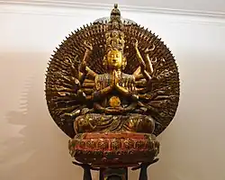 The Thousand-armed Avalokiteśvara with eleven heads is the most popular form. The number of heads increases to twenty five, and sometimes the crown bears upto five hundred heads.[12]