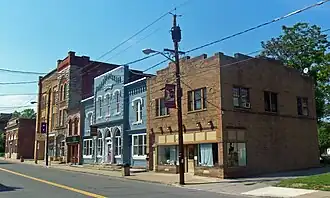 Ellenville Downtown Historic District is a national historic district located at Ellenville, Ulster County, New York. It encompasses 52 contributing buildings and 3 contributing sites in the central business district of Ellenville. It developed after 1823, with the construction of the Delaware and Hudson Canal, and includes notable examples of Greek Revival, Italianate, Late Victorian, and Art Deco architecture. Located in the district are the separately listed Christ Lutheran Church and Parsonage, George and John R. Hunt Memorial Building, and United States Post Office. Other notable contributing resources include the Ellenville United Methodist Church (1858), First National Bank Building (1868), Wawarsing Town Hall (1895), Norbury Hall, Scoresby Hook and Ladder, Cohen's Bakery, Ellenville Electric Co. Building (1914), Home National Bank (1928), H. Rosenstock and Sons clothing factory (c. 1920), the Miller Building (c. 1940), and the Village Motel (c. 1955).[2]